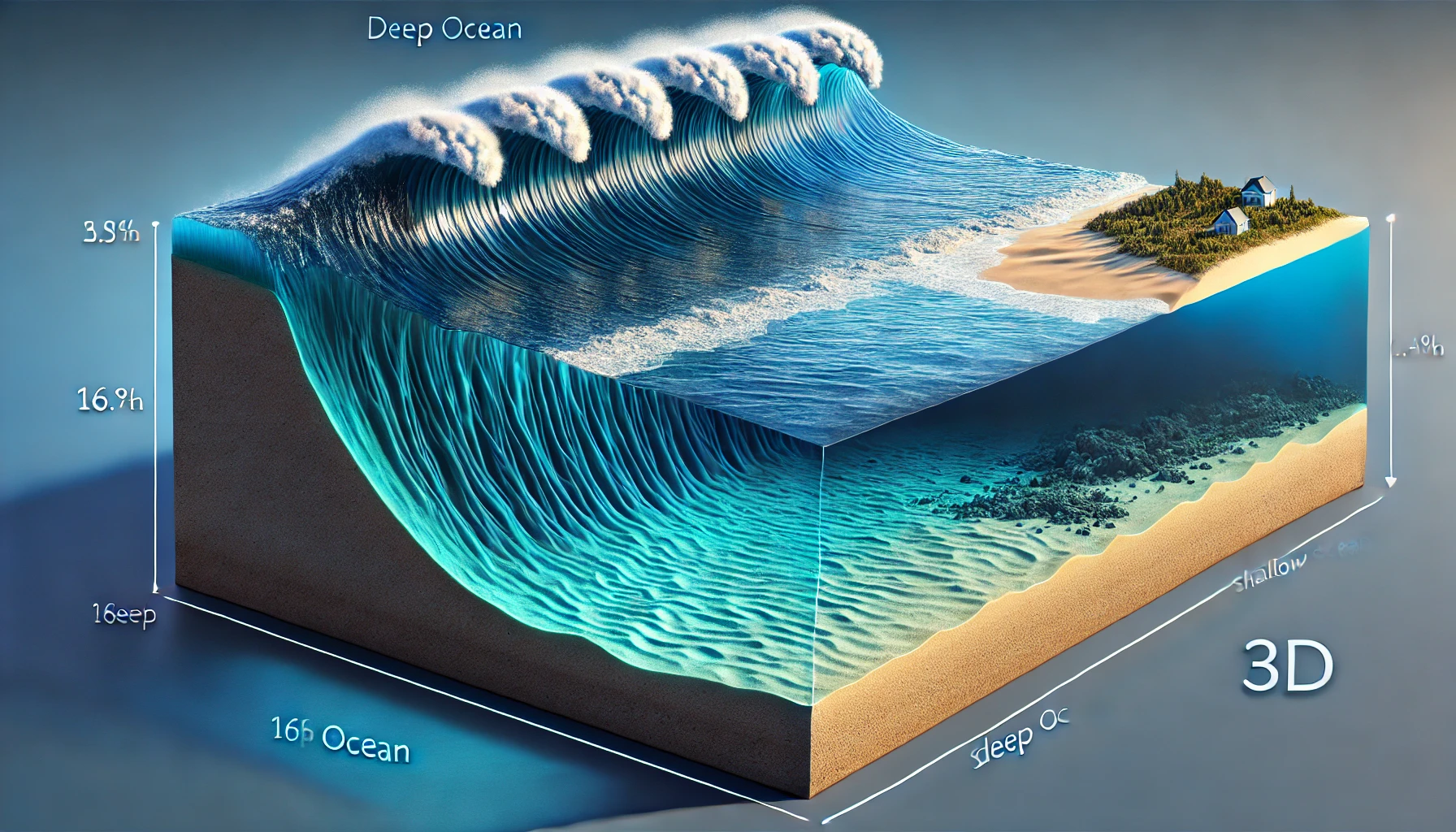 파도의 속도: 수심 4,000m 해양에서 시속 700~800km까지 도달 가능 (제트기 수준).