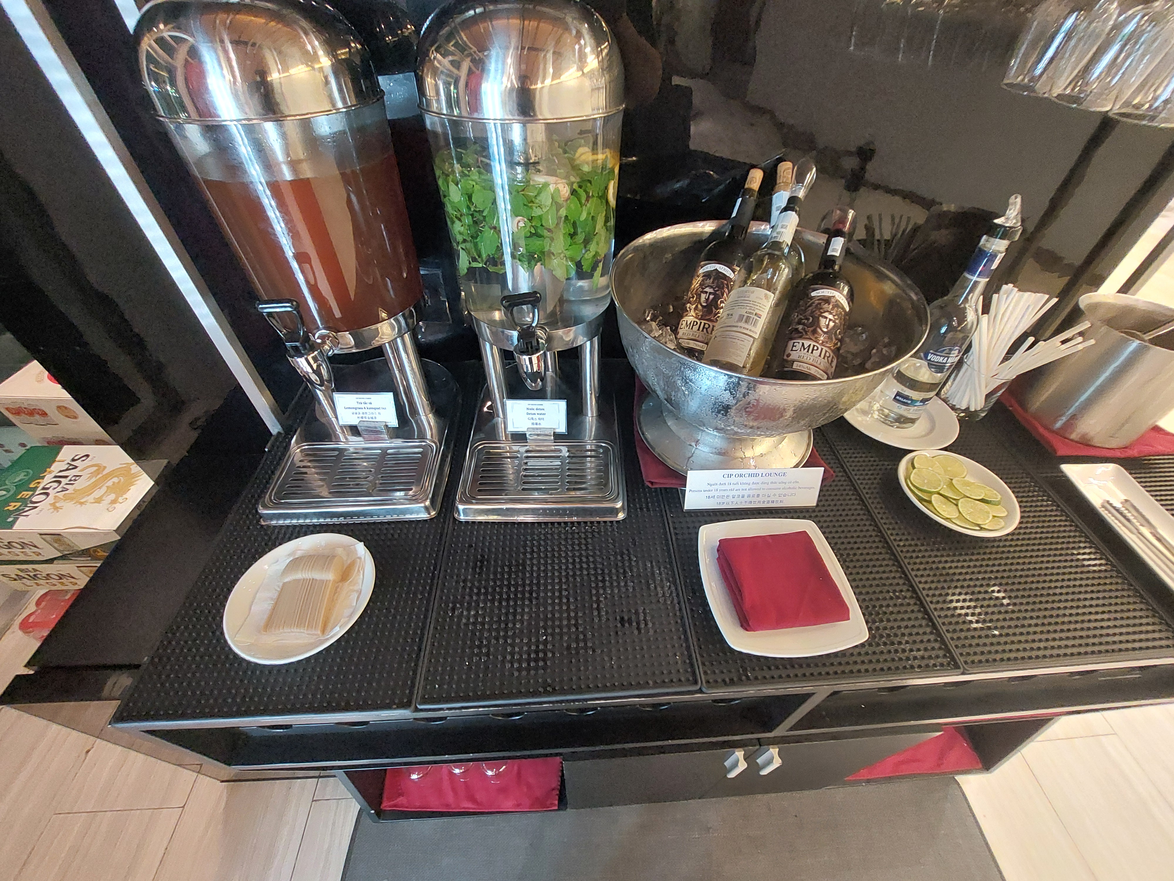 다낭 공항 오키드 라운지는 뷔페 형태로 운영된다.